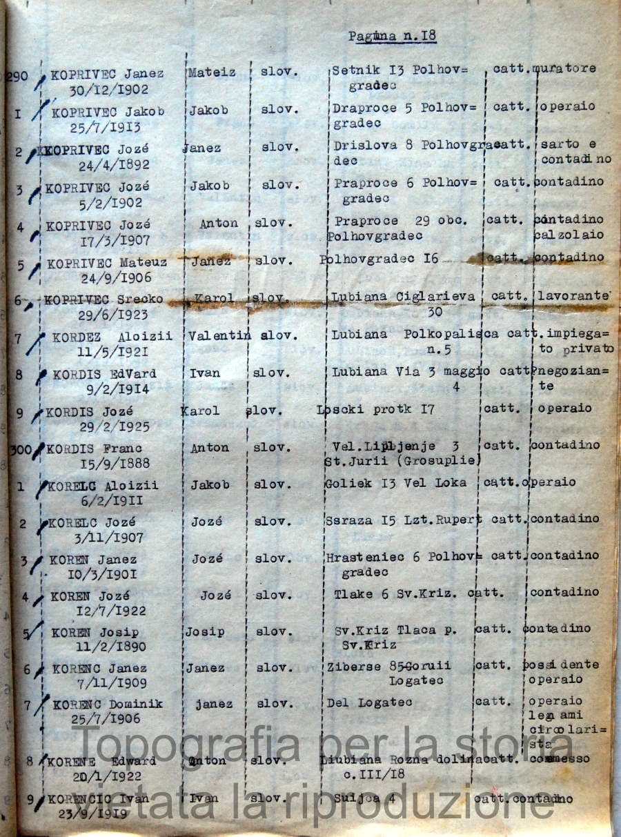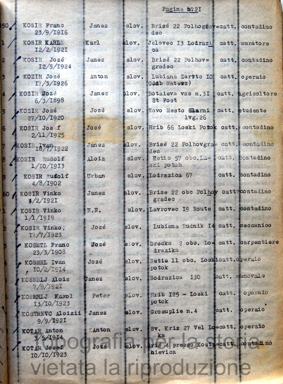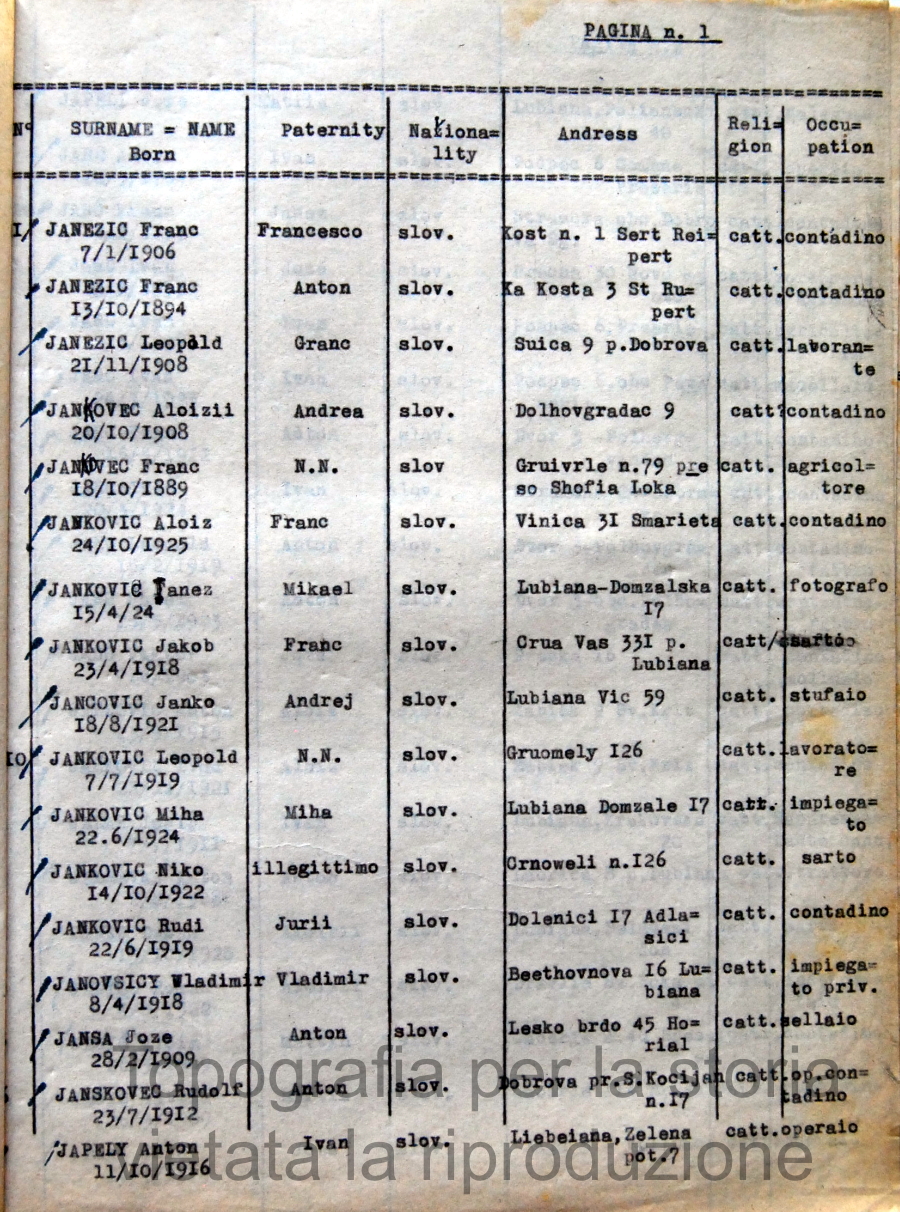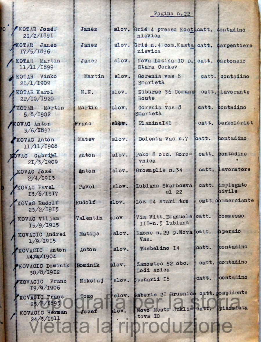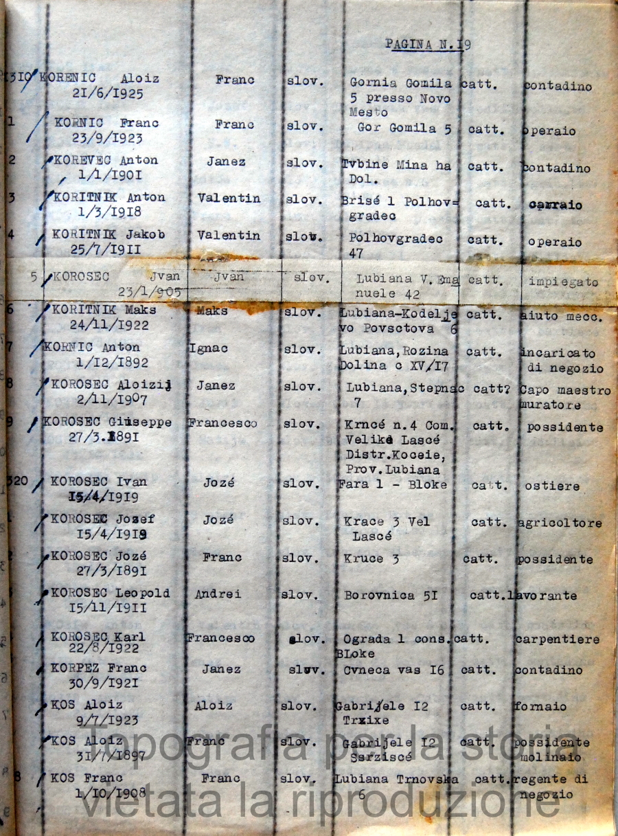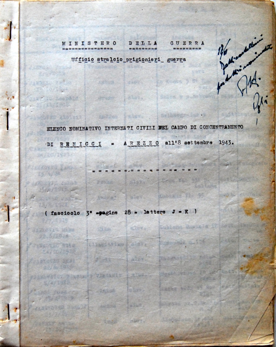 Elenco nominativo internati civili del campo di concentramento di Renicci. Fascicolo 3