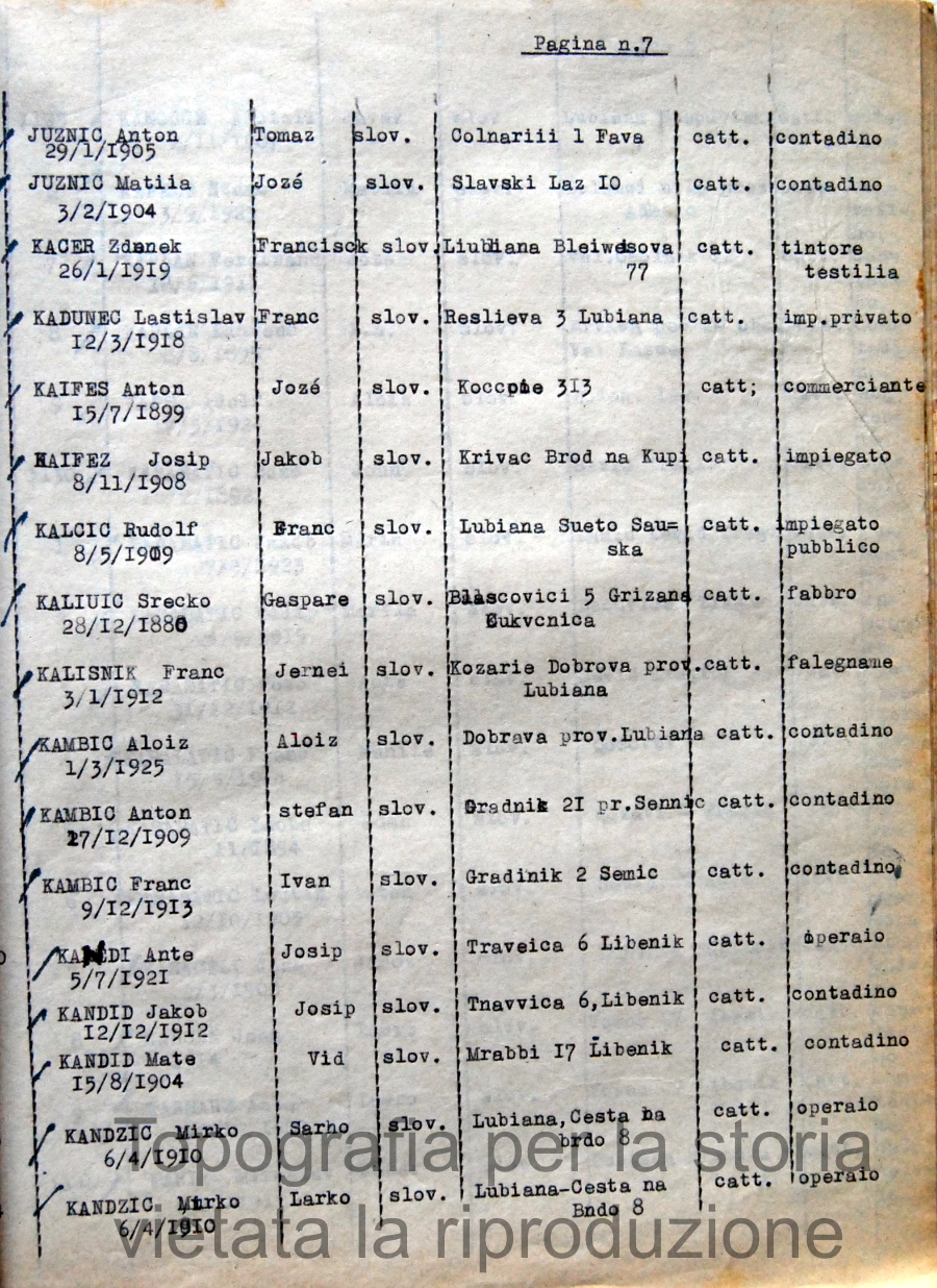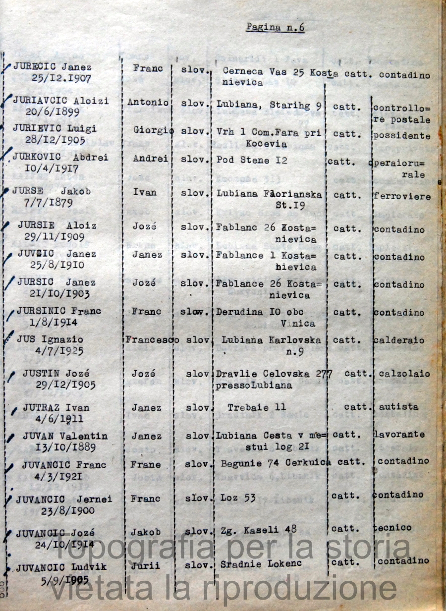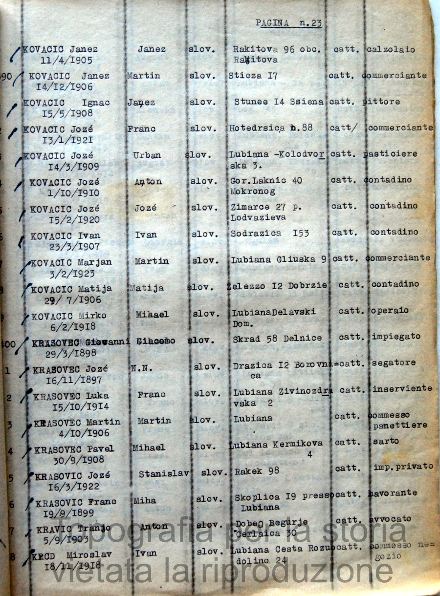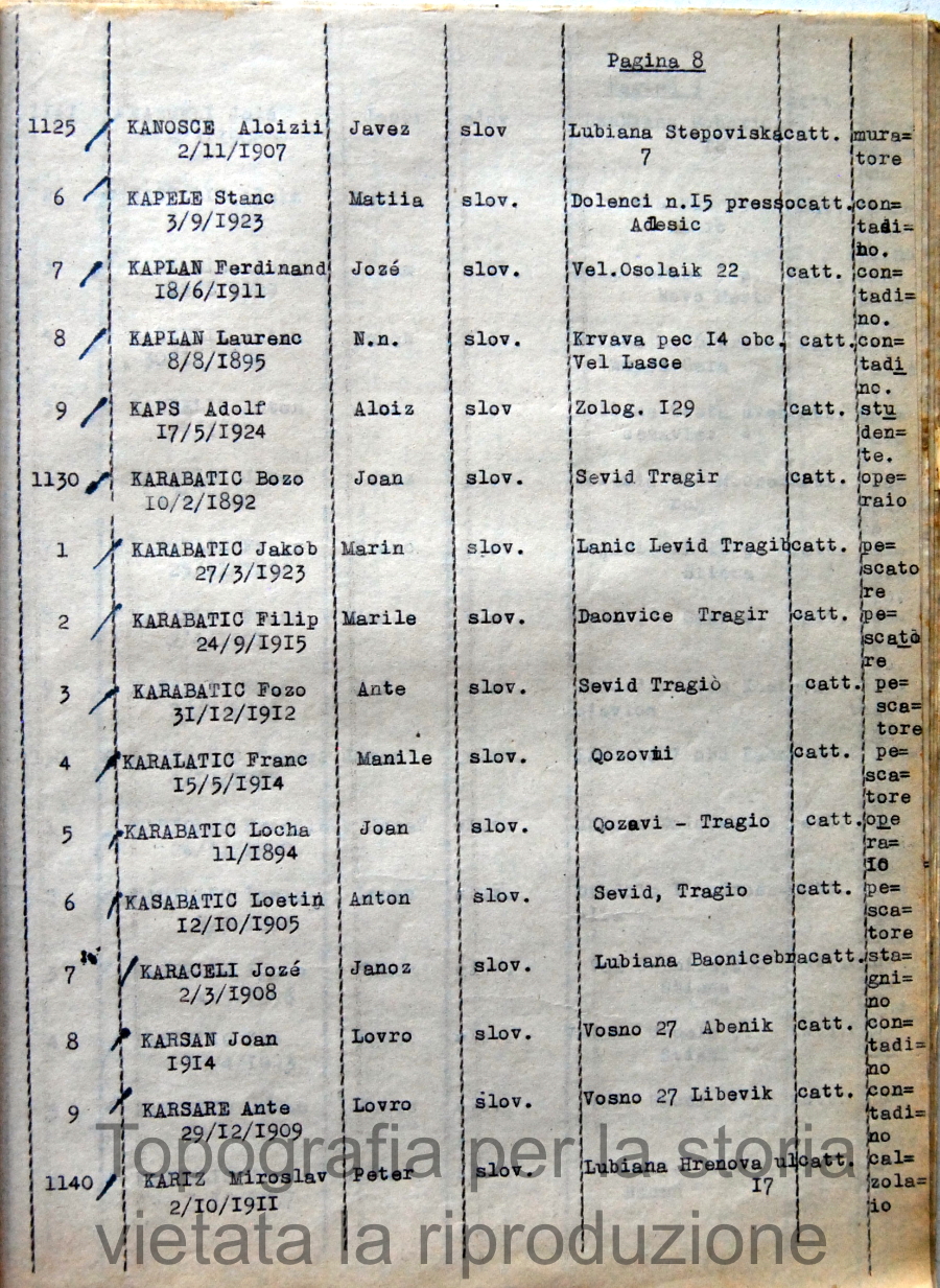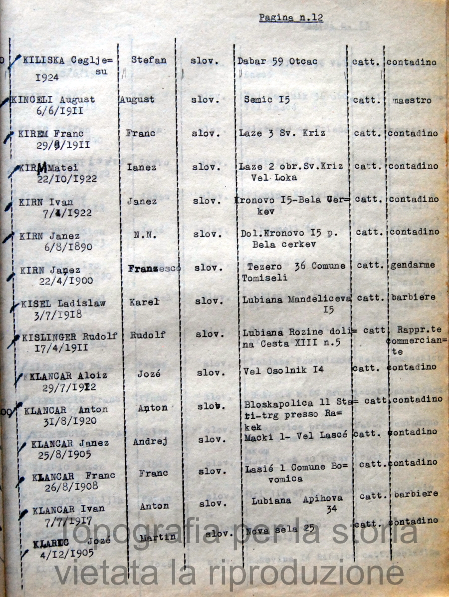 Elenco nominativo internati civili del campo di concentramento di Renicci. Fascicolo 3