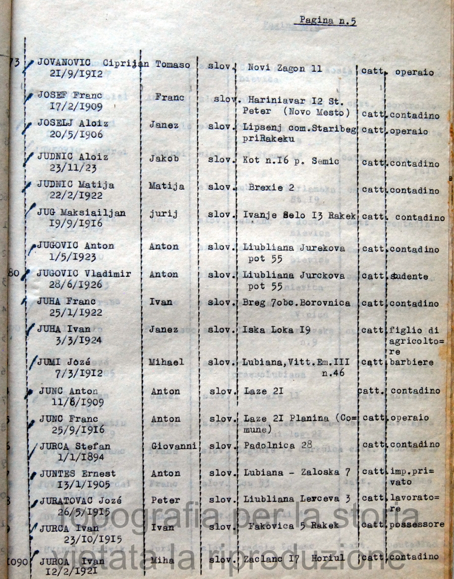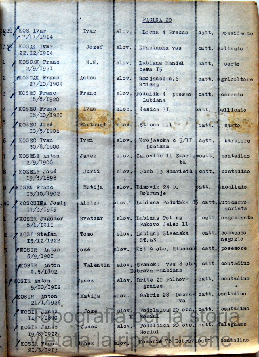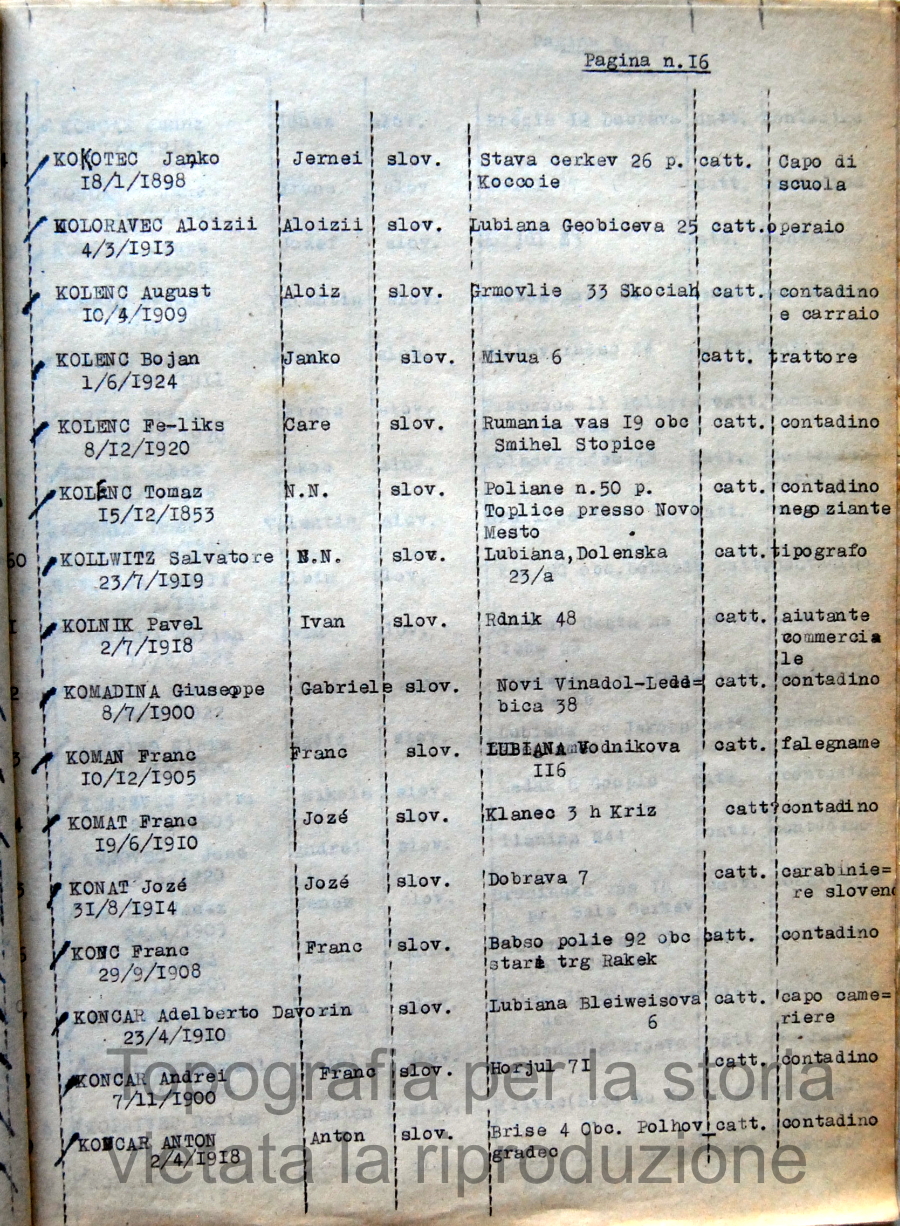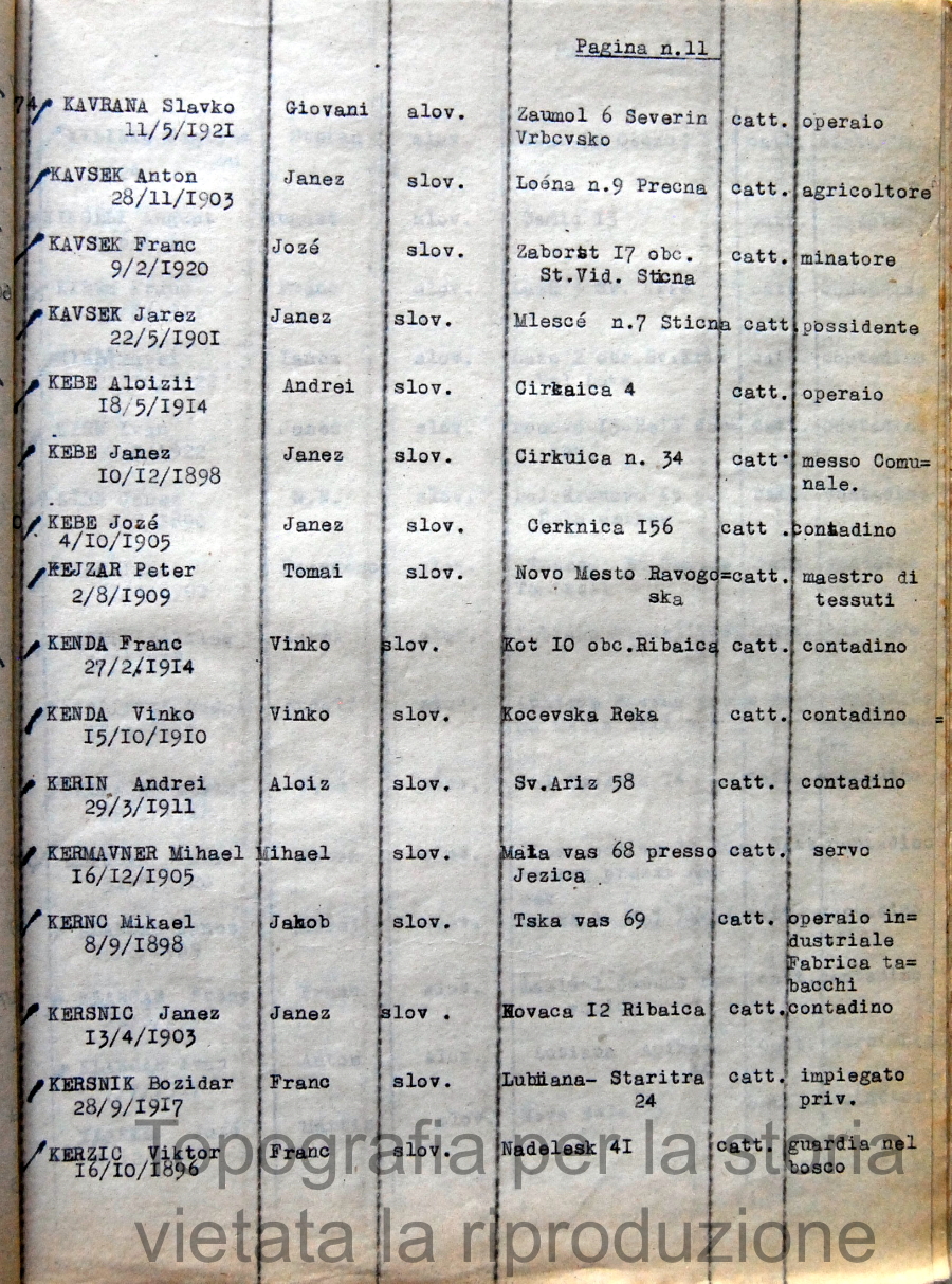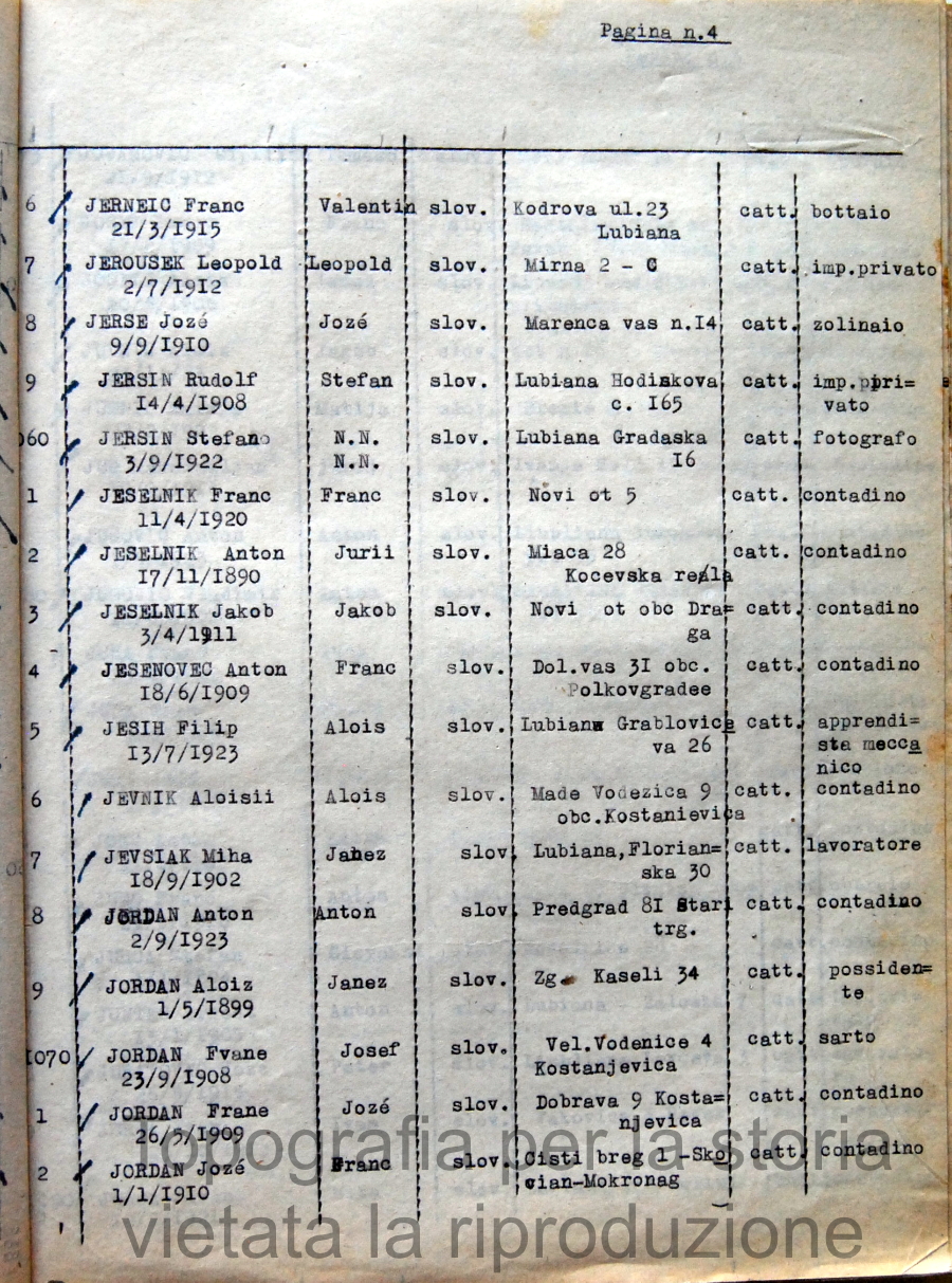 Elenco nominativo internati civili del campo di concentramento di Renicci. Fascicolo 3