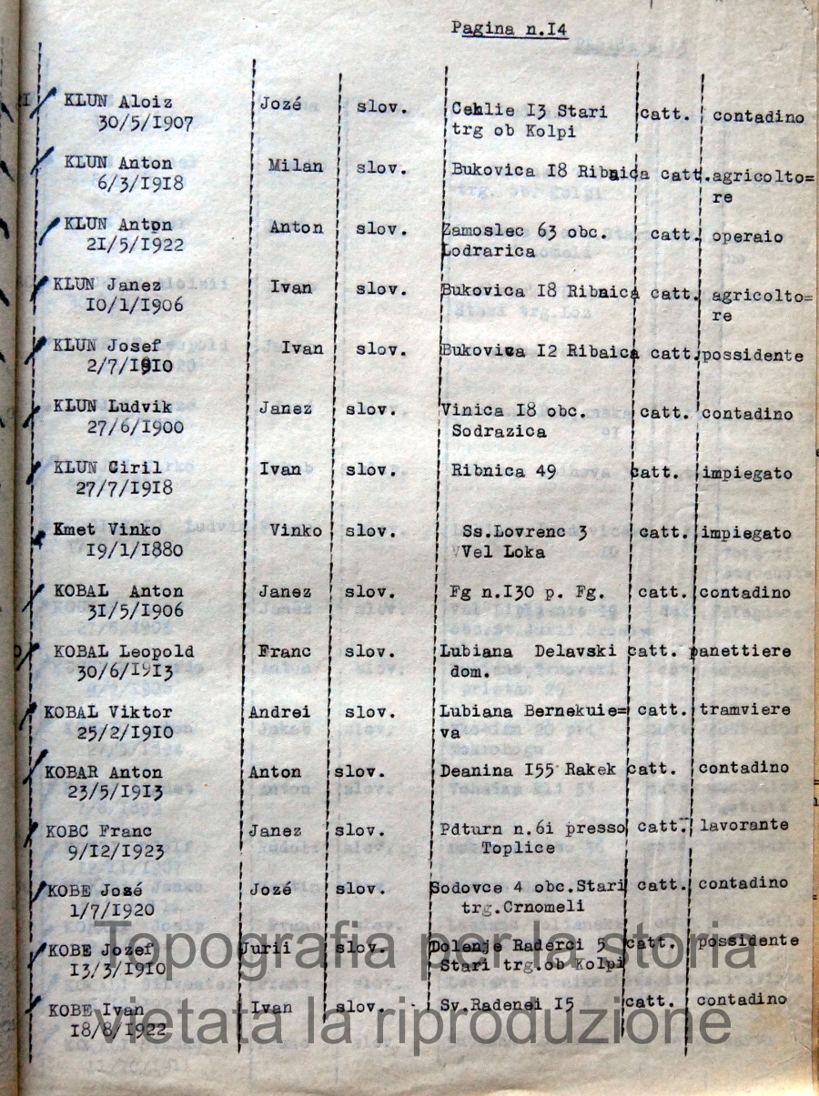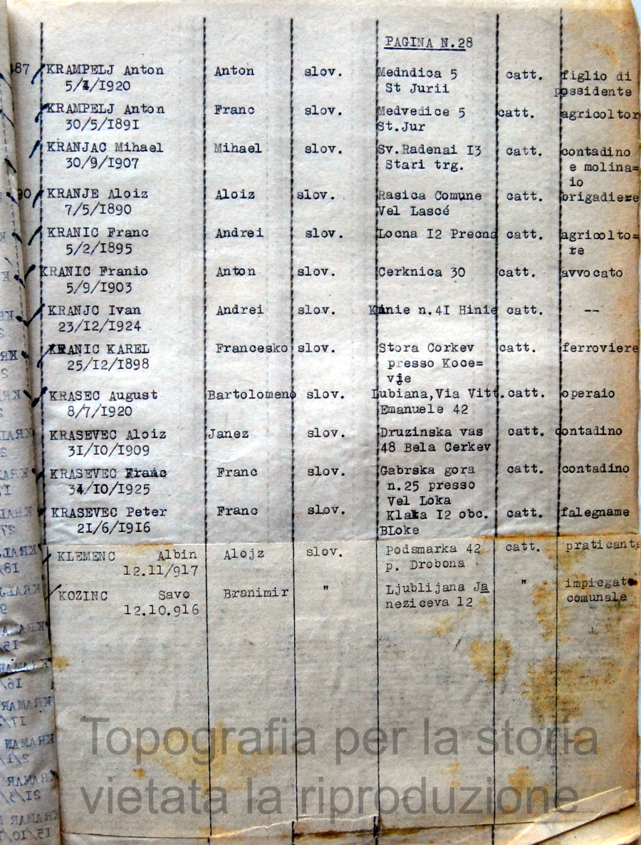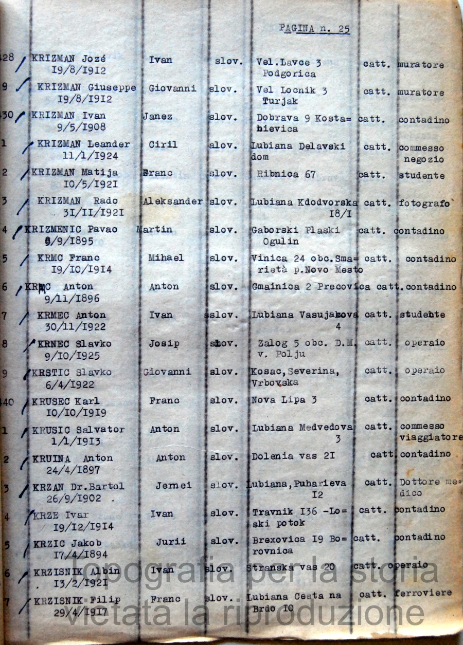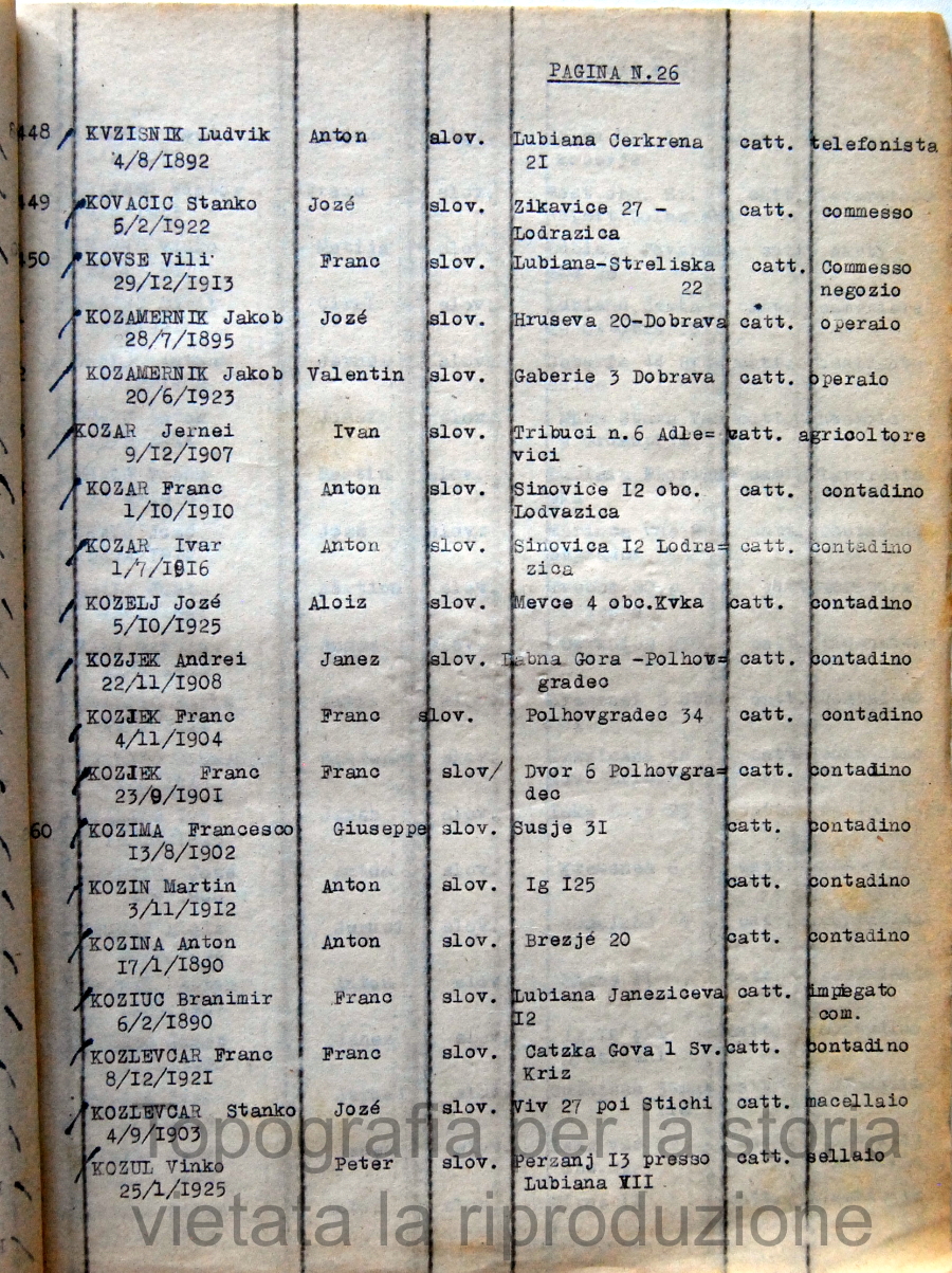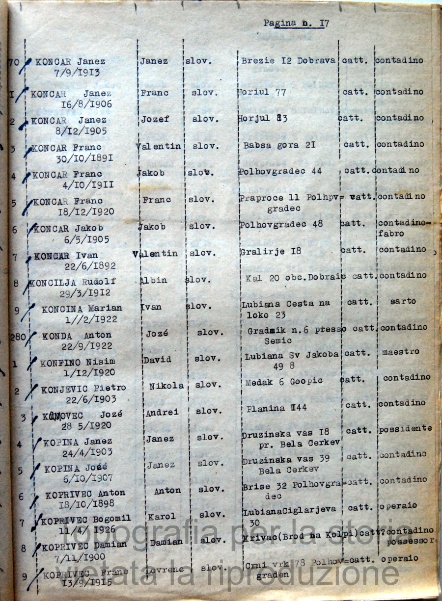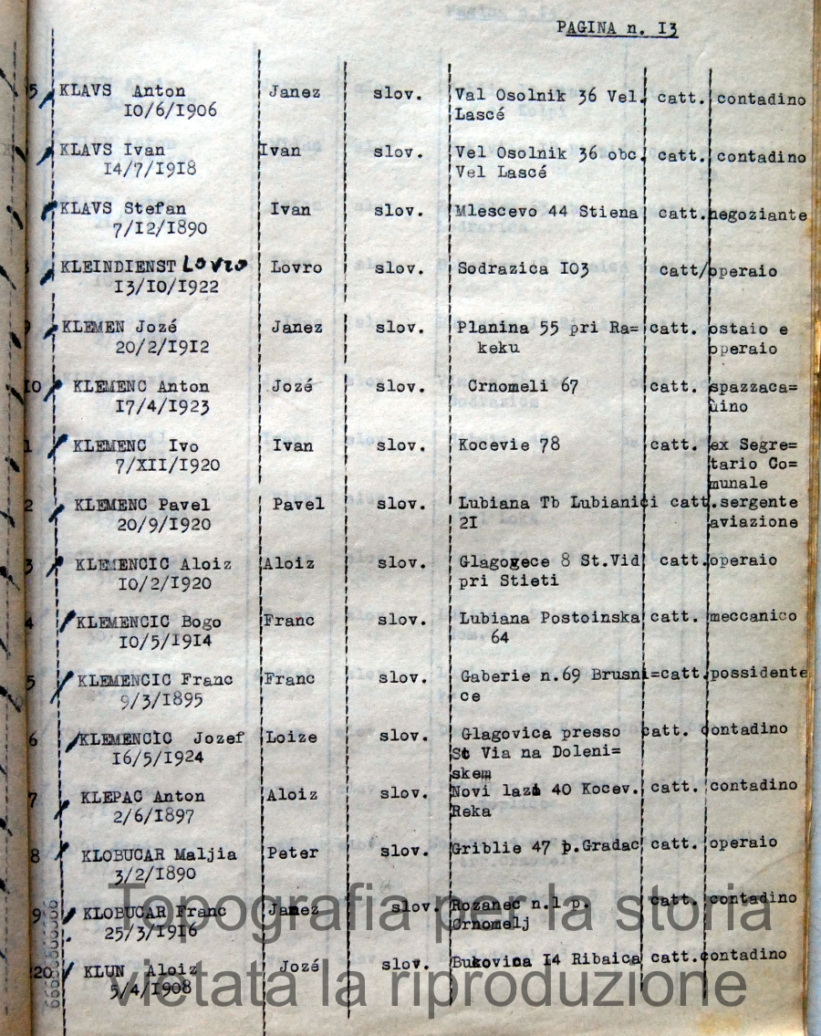 Elenco nominativo internati civili del campo di concentramento di Renicci. Fascicolo 3