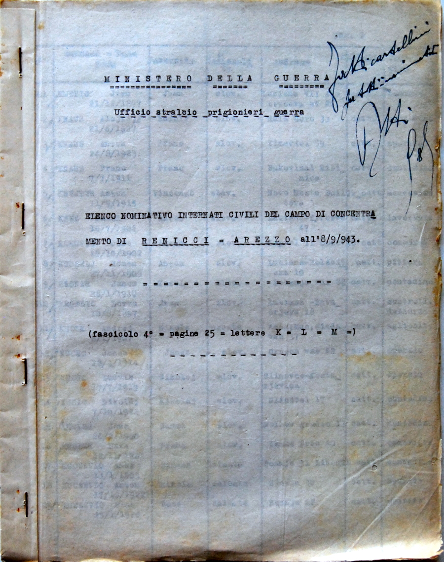 25_Elenco nominativo internati civili del campo di concentramento di Renicci. Fascicolo 4