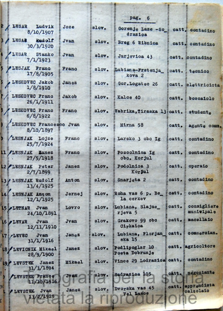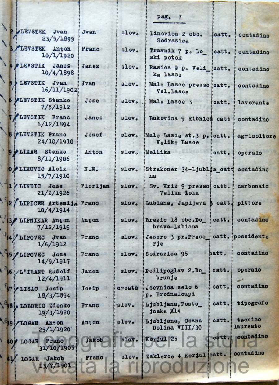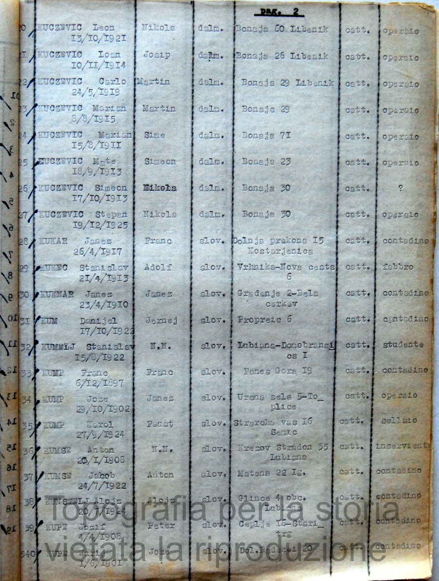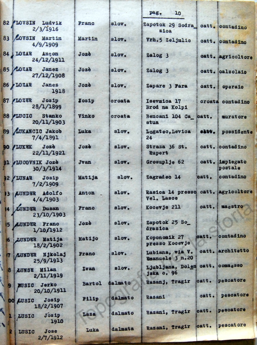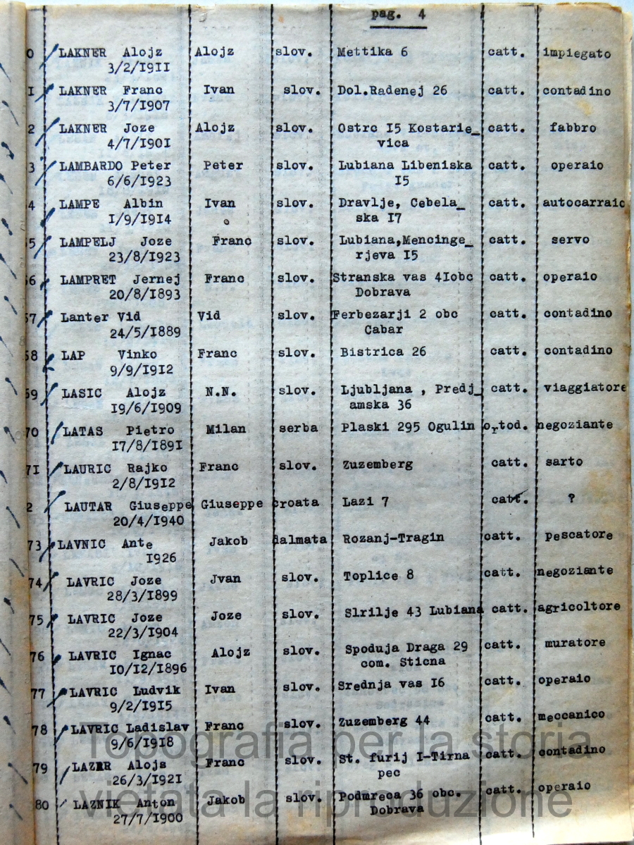 Elenco nominativo internati civili del campo di concentramento di Renicci. Fascicolo 4