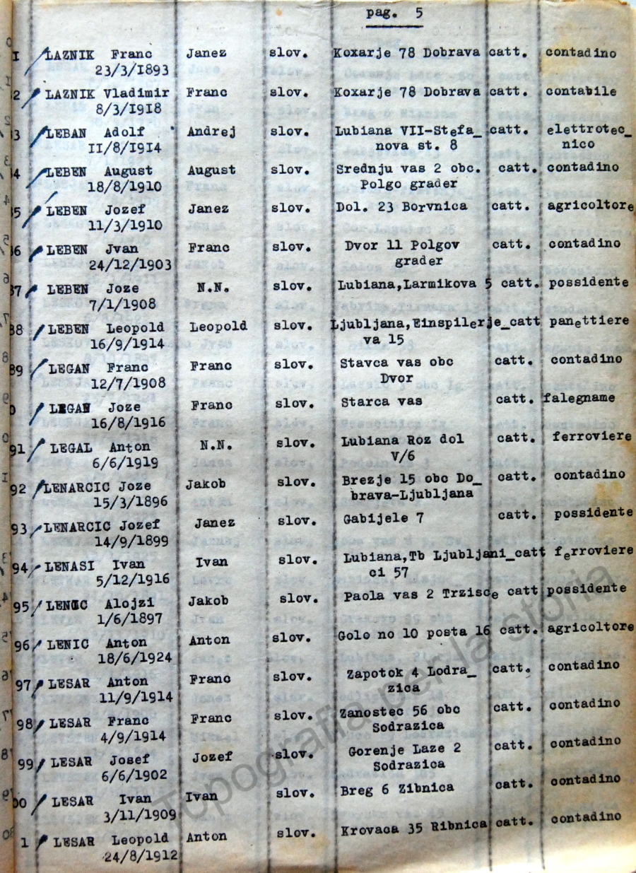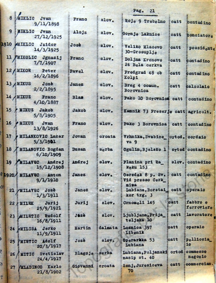 21_Elenco nominativo internati civili del campo di concentramento di Renicci. Fascicolo 4