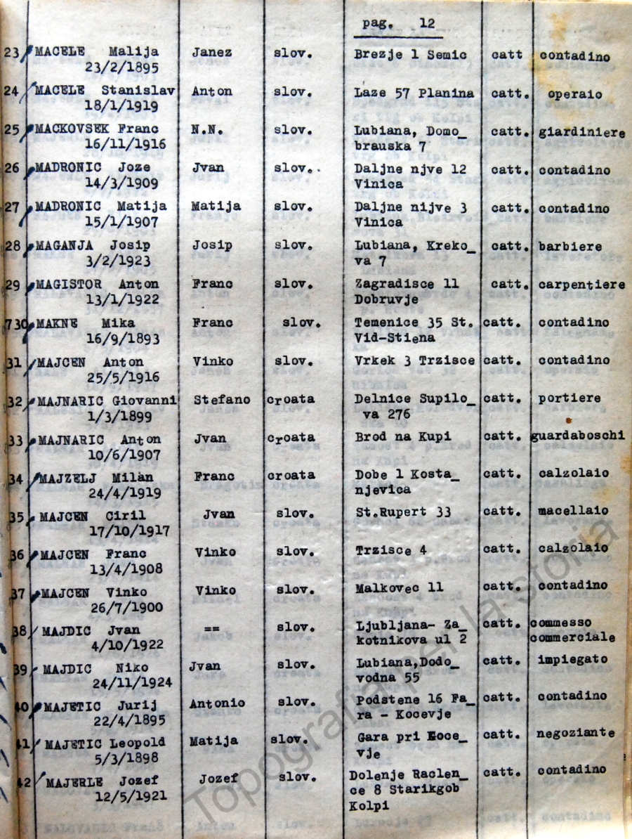 12_Elenco nominativo internati civili del campo di concentramento di Renicci. Fascicolo 4