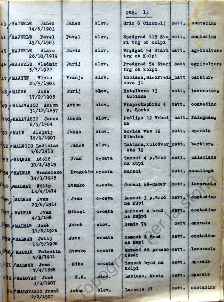 13_Elenco nominativo internati civili del campo di concentramento di Renicci. Fascicolo 4