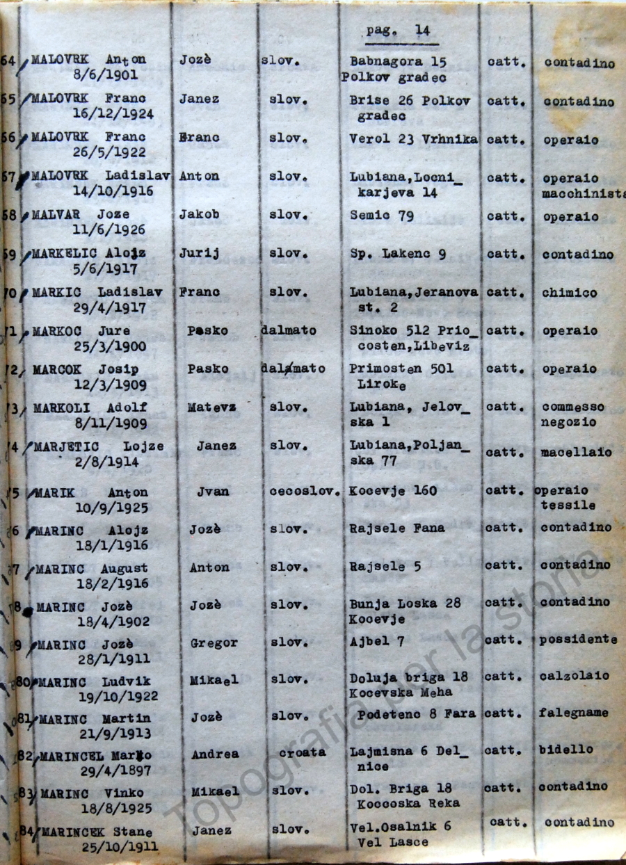 14_Elenco nominativo internati civili del campo di concentramento di Renicci. Fascicolo 4