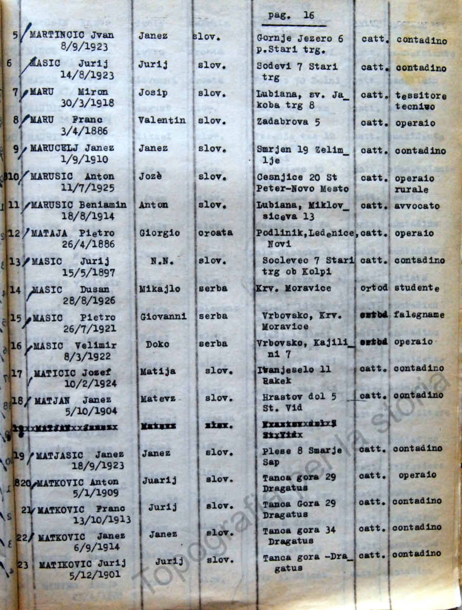 16_Elenco nominativo internati civili del campo di concentramento di Renicci. Fascicolo 4