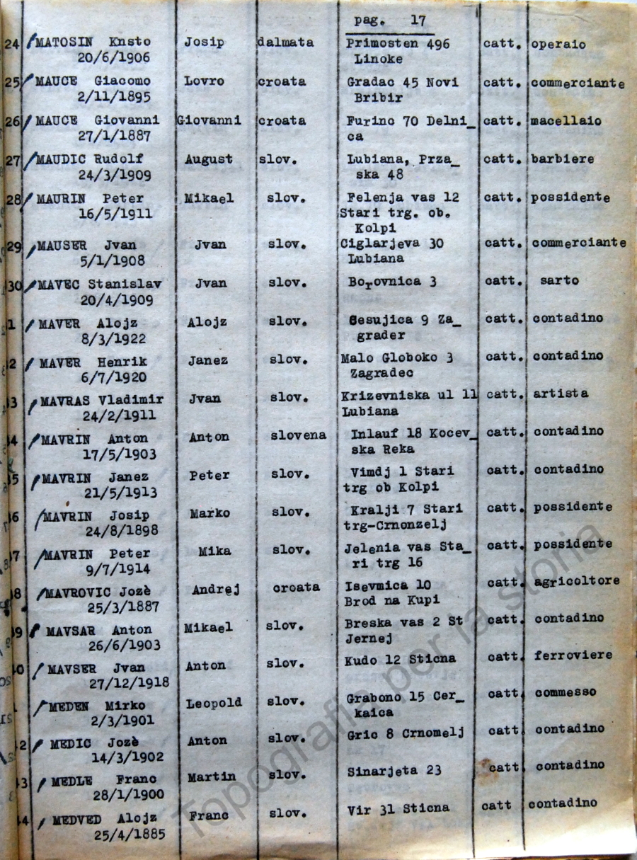 17_Elenco nominativo internati civili del campo di concentramento di Renicci. Fascicolo 4