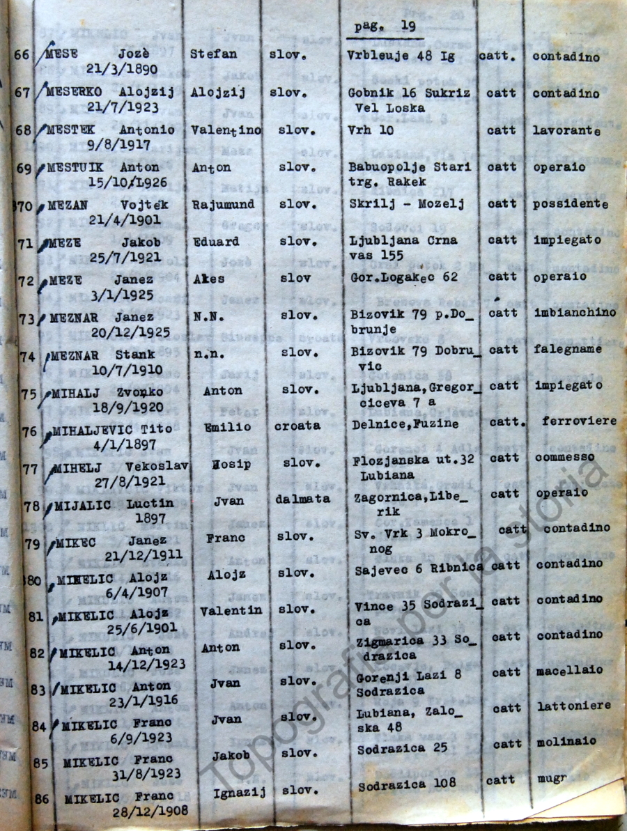 19_Elenco nominativo internati civili del campo di concentramento di Renicci. Fascicolo 4