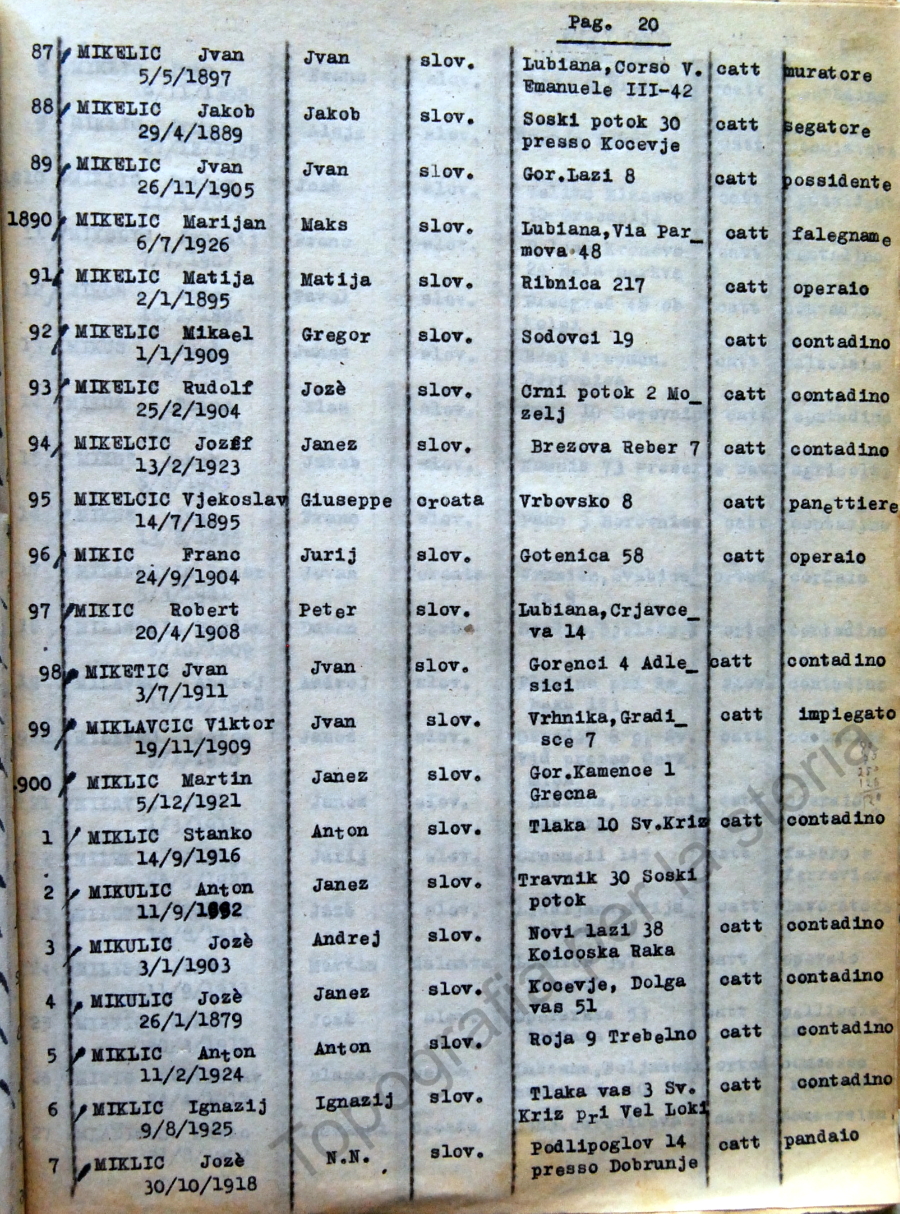 20_Elenco nominativo internati civili del campo di concentramento di Renicci. Fascicolo 4