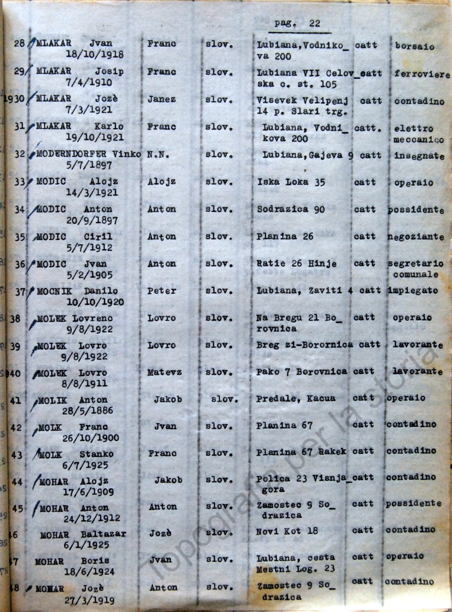 22_Elenco nominativo internati civili del campo di concentramento di Renicci. Fascicolo 4