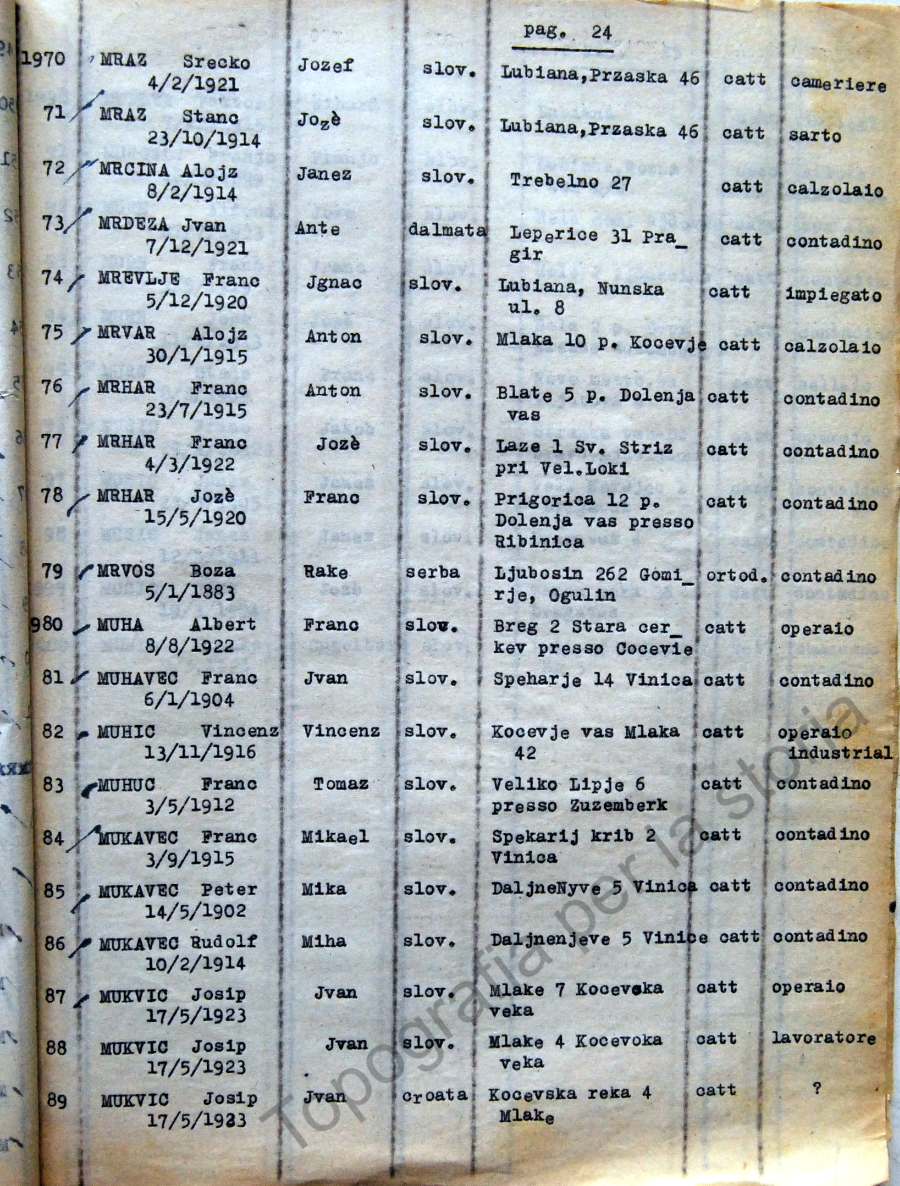 24_Elenco nominativo internati civili del campo di concentramento di Renicci. Fascicolo 4