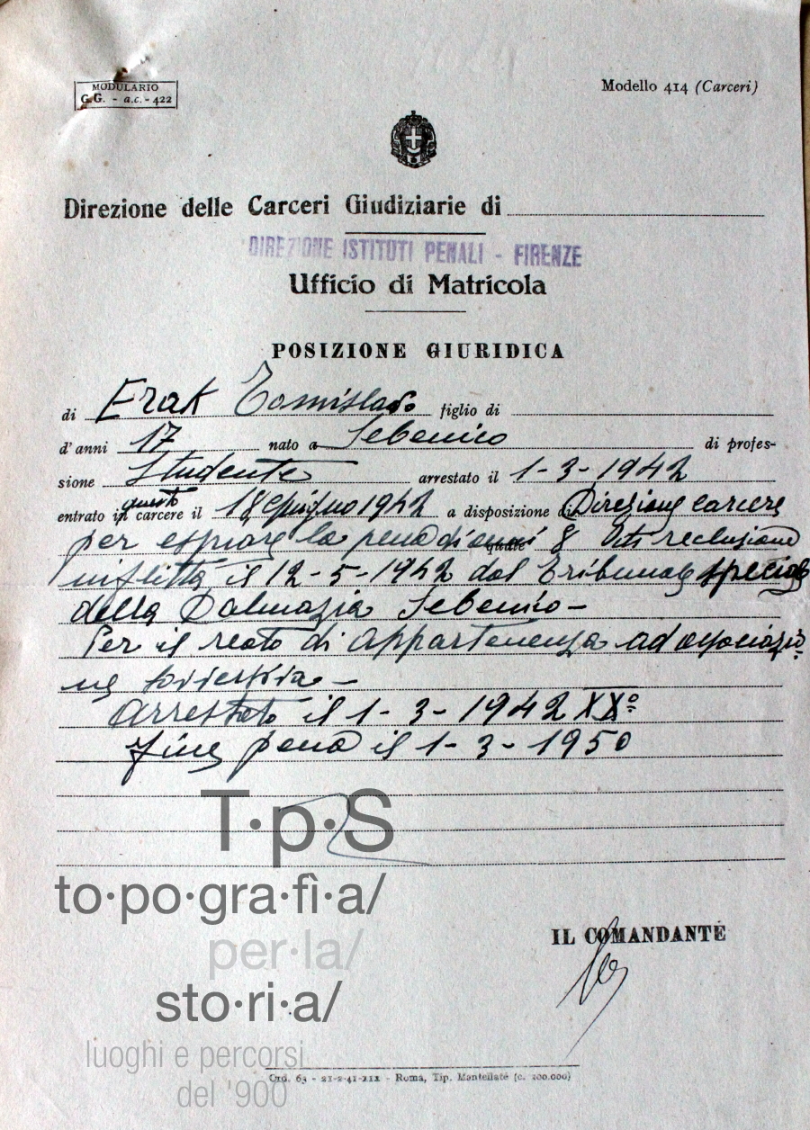 Erak Tomislavo_Foglio matricola carcere di Firenze