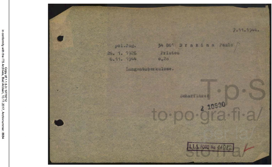 KL Buchenwald Certificato di morte di Dražina Pavle