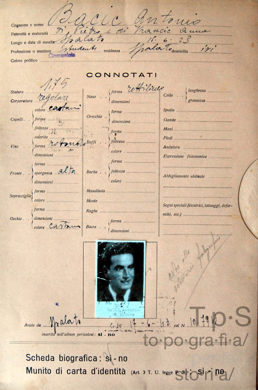 Fascicolo personale di Ante Bacić