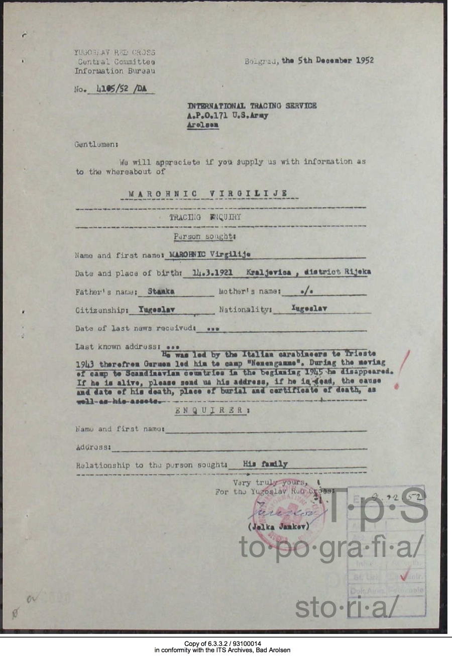 Richiesta di informazioni su Marohnić Virgilije