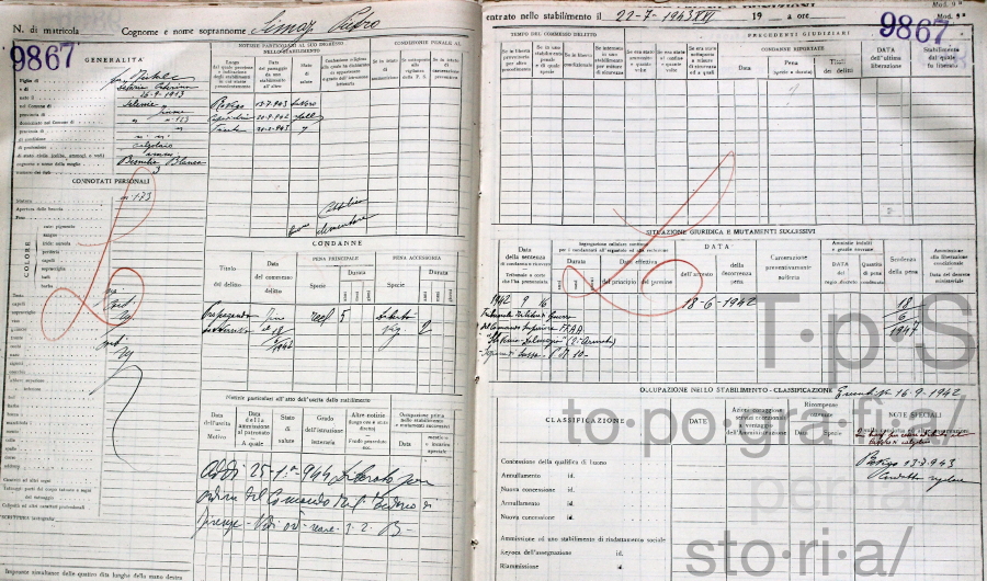 Matricola del detenuto Pietro Šimac