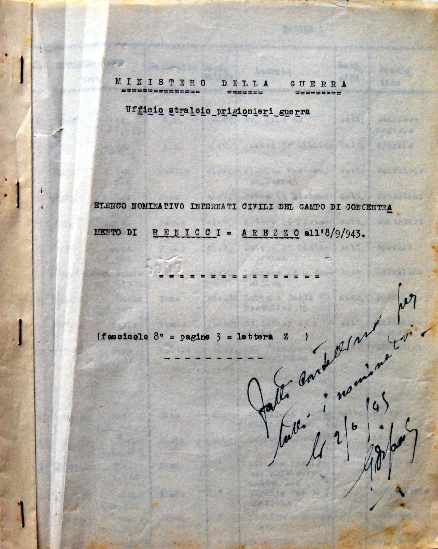 Elenco nominativo internati civili del campo di concentramento di Renicci. Fascicolo 8_2