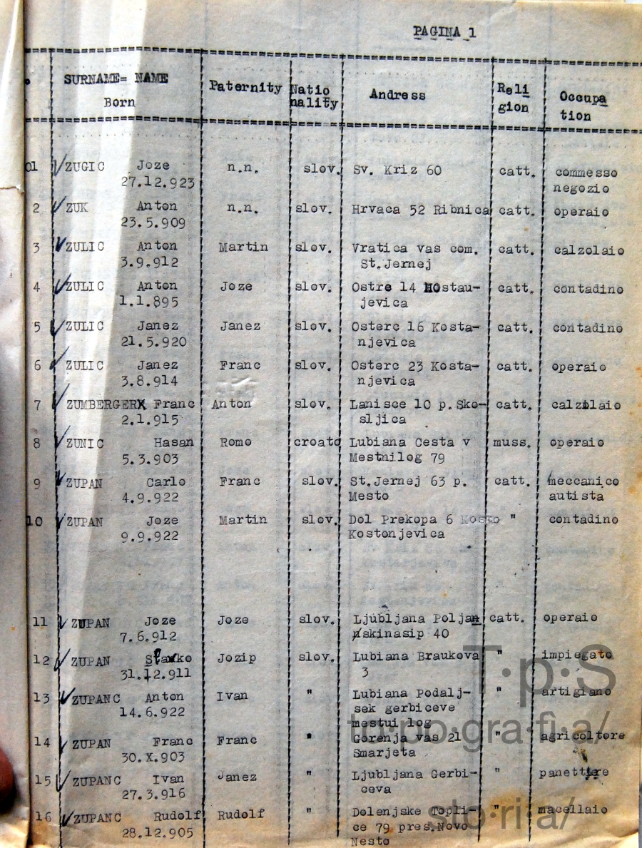 Elenco nominativo degli internati civili del campo di concentramento di Renicci. Fascicolo 8_1