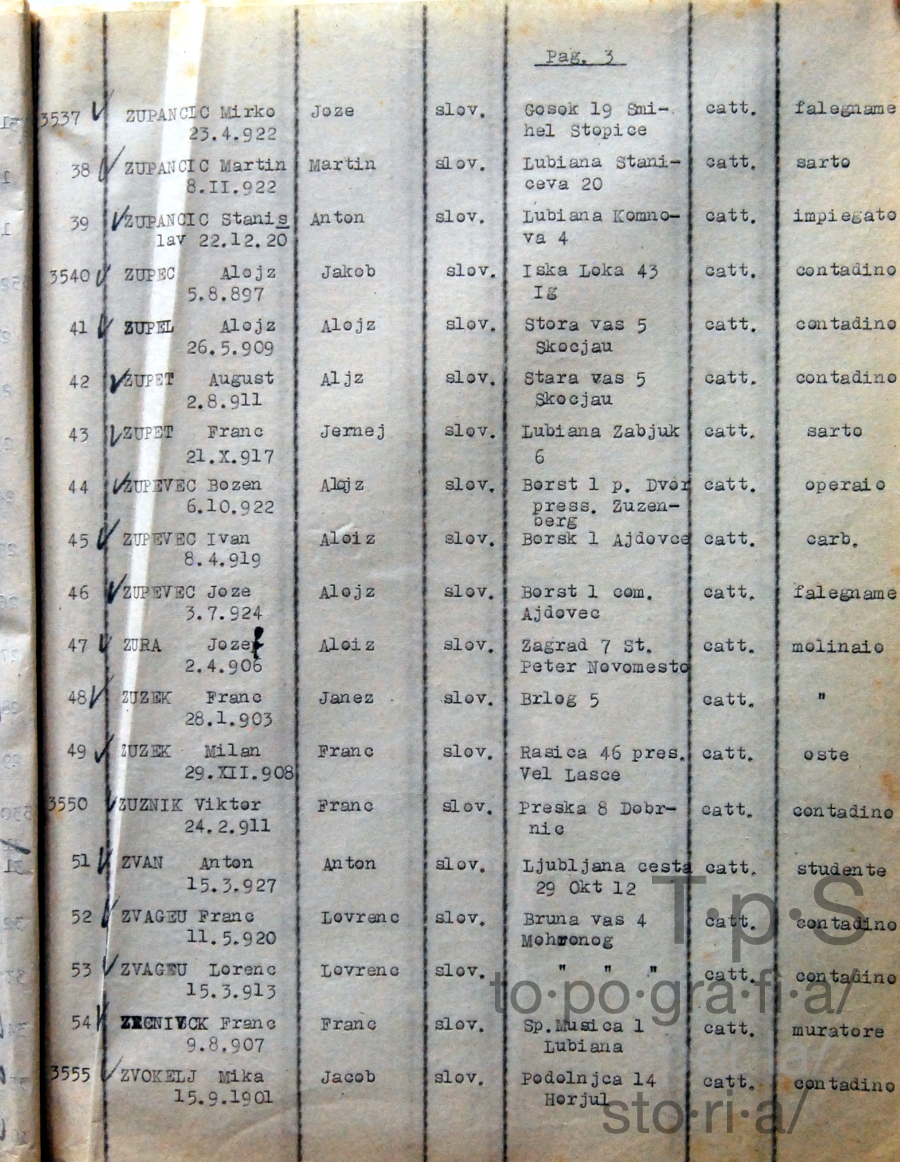Elenco nominativo internati civili del campo di concentramento di Renicci. Fascicolo 8_3