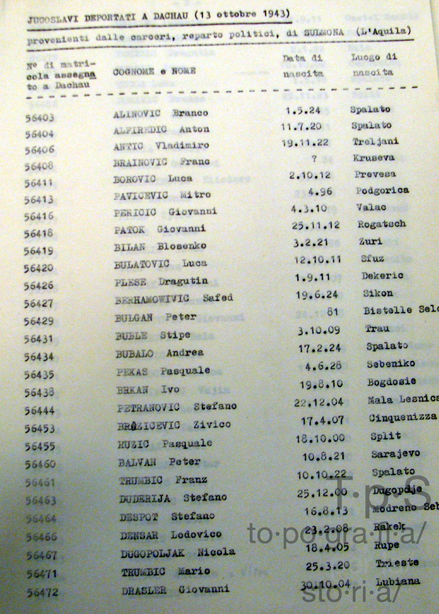 Jugoslavi deportati a Dachau (13 ottobre 1943) provenienti dalle carceri di Sulmona