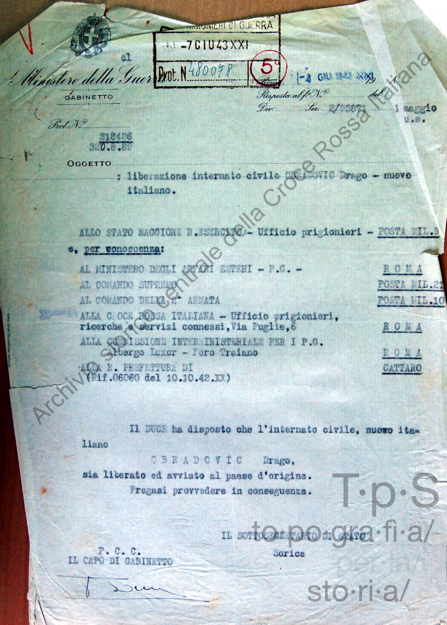 Liberazione internato civile Obradovic Drago