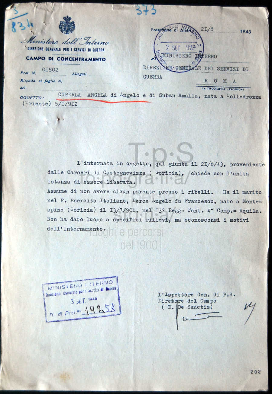 Cuperla Angela di Angelo e di Suban Amalia, nata a Colledrozza (Trieste) 05/01/1912