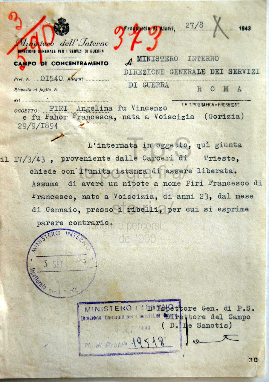 Piri Angelina figlia di Vincenzo e Pahor Francesca, nata a voiscizia a Gorizia