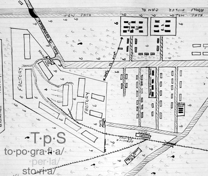 The camp, which consisted of wooden barracks, was located in the immediate vicinity of the chemical works under construction, on which the British P.O.W.s were compelled to work for 10 hours a day, their only free time being from Saturday afternoon to Sunday evening.1