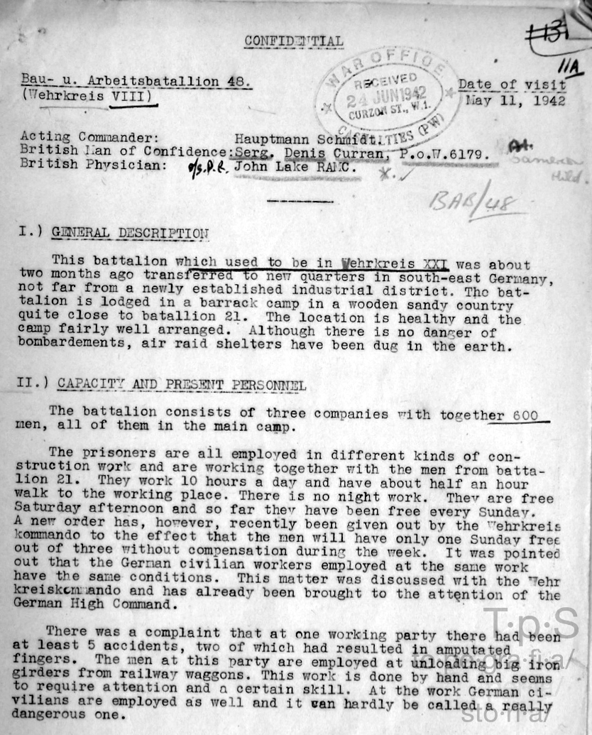 In March 1943 the Germans decided to amalgamate Bau-und Arbeitsbataillon B.A.B. 48 with B.A.B. 21 thereby creating a single work detachment ( B.A.B. 21) made up of 1,198 British prisoners of war.