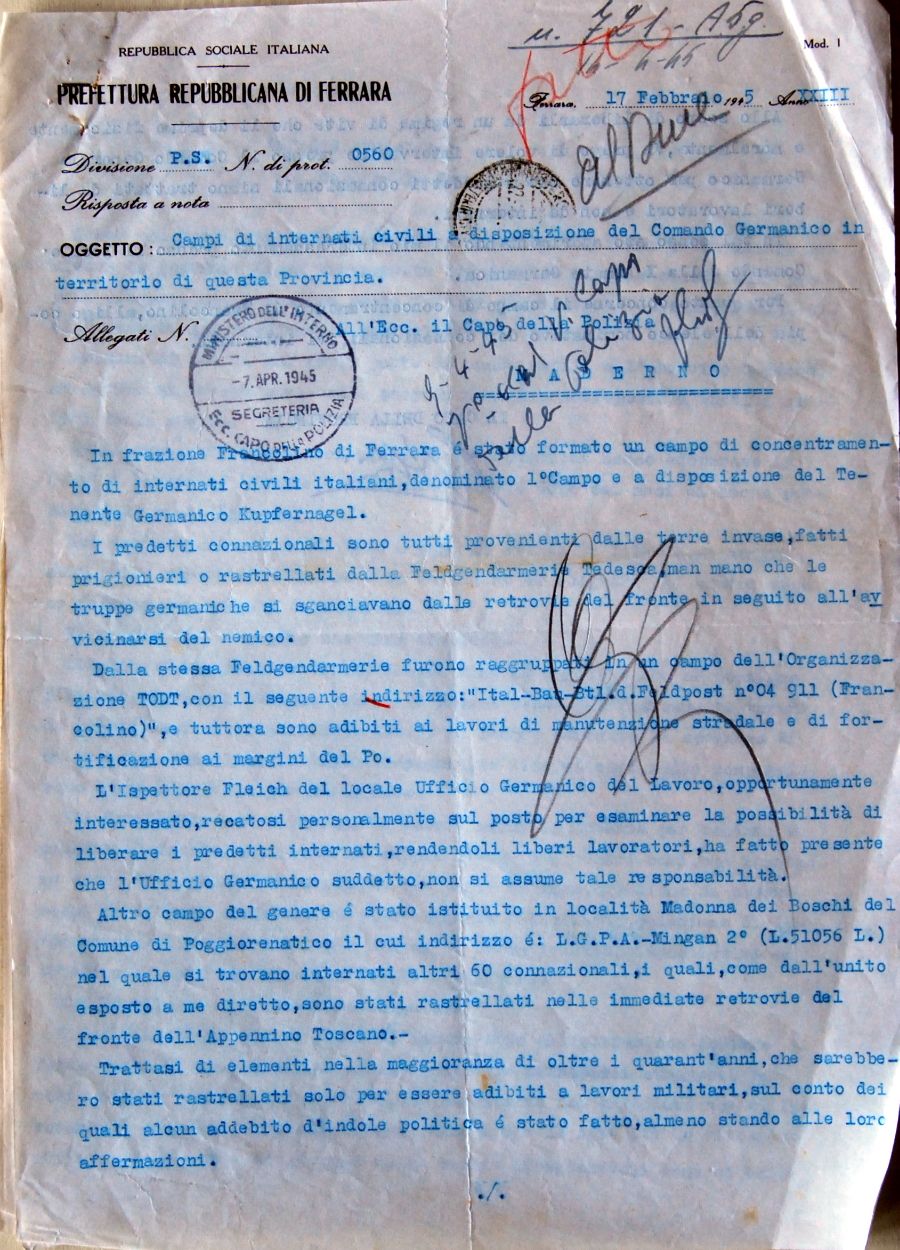 Un altro campo di lavoro per civili rastrellati in provincia di Ferrara si trova nel comune di Poggio Renatico.
