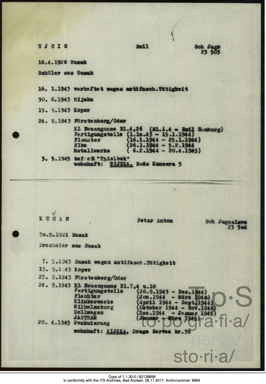 From Koper (Capodistria) prison to forced labour in Neuengamme