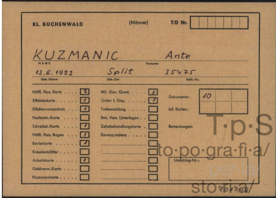Per altri, Buchenwald fu solamente una delle molteplici stazioni di transito. Bogomir Linić, per esempio, dopo Buchenwald, trascorse due mesi e mezzo a Colonia per poi essere trasferito in Francia a Calais e nella cittadina di Hesdin, dove lavorò alla fabbricazione dei torpedo. Di qui passò per Osnabrück, di nuovo Buchenwald, dove rimase fino alla fine del 1944 e, transitando per un campo di cui Linić non ricorda il nome, deportato nelle cittadine polacche di Walhau e Breslavia, dalle quali fu inviato infine alla prigione di Brandeburg-Görden, presso la località di Brandeburg an der Havel, dove si trovava al momento della liberazione da parte dell'Armata rossa32.